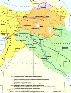 110 թվականին՝ Սանատրուկի մահից հետո Հռոմի համաձայնությամբ գահին բազմում է Աշխադարը։ Սակայն 113 թվականին պարթևաց նոր թաղավոր Խոսրովը նրան գահընկեց է անում և առանց Հռոմի համաձայնության գահ բարձրացնում արքայազն Պարթամասիրին: