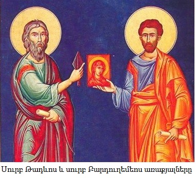 Ըստ ավանդության՝ Սբ. Թադեոսը Հայաստան է բերել է Սուրբ Գեղարդը, որով զինվորը խաչի վրա խոցեց Հիսուսի կողը, ինչպես նաև մի բաժին այն յուղից, որ Հիսուս փոխանցել էր առաքյալներին: Իսկ Սբ. Բարդուղիմեոսը իր հետ Հայաստան է բերել Աստվածամոր պատկերը: Առաքյալների նահատակությունից հետո նոր հավատքի քարոզչությունը շարունակվում է։ I դարի երկրորդ կեսում քրիստոնեությունը լայն տարածում է գտնում նաև Փոքր Հայքում։